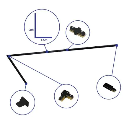 Bright Choice Rail Set 1-Fase L 1,5 x 2 Metro Nero | incl. Tappo Di Chiusura, Connettore di Alimentazione e L -Connettore