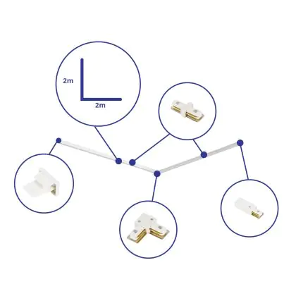 Bright Choice Rail Set 1-Fase L 2 x 2 Metro Bianca | incl. Tappo Di Chiusura, Connettore di Alimentazione e L -Connettore