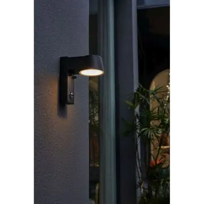 Descrizione D'Lite Luce Da Parete Lira Nero 7W 600lm 830 Luce Calda - | IP54 - Sensore Di Movimento