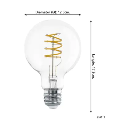 Descrizione Eglo LED E27 Pera Chiara Filamento 7.3W 806lm - 827 Bianco Molto Caldo | Sostitutiva 60W