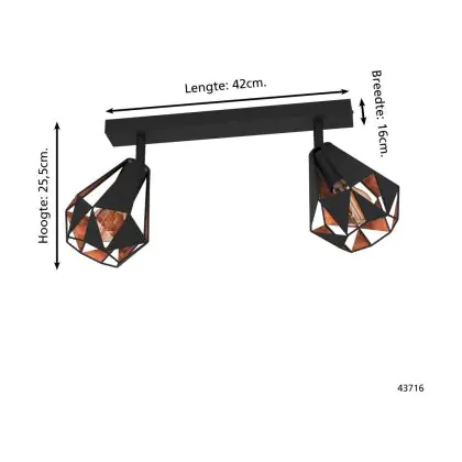Eglo Luce da soffitto Carlton 7 Acciaio Nero Rame | IP20 - Adatto per 2x E27