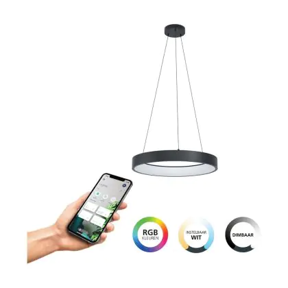 Eglo Luce Pendente Marghera-Z Acciaio Nero 27.5W 3150lm - 827-865 Regolabile Bianca + RGB | IP20 - Zigbee Dimmerabile