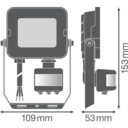 Descrizione Ledvance Proiettore LED Compatto Nero 10W 1000lm 100D - 840 Bianco Freddo | IP65 - Simmetrico - Sensore di movimento e luce