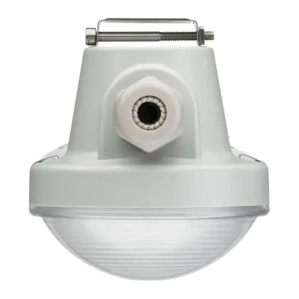 Questo apparecchio può essere usato sia in spazi interni che in spazi esterni, poiché ha indice di protezione contro l'ingresso di acqua e polvere IP65. In generale, un apparecchio con IP44 è resistente a schizzi di acqua e umidità, e può quindi essere installato in spazi esterni molto umidi o esterni riparati, come sono una tettoia. Un apparecchio che invece verrà esposto a intensi getti di acqua deve avere almeno IP54. Questa lampada ha anche un indice di resistenza a urti e impatti di IK08 - 5 Joule